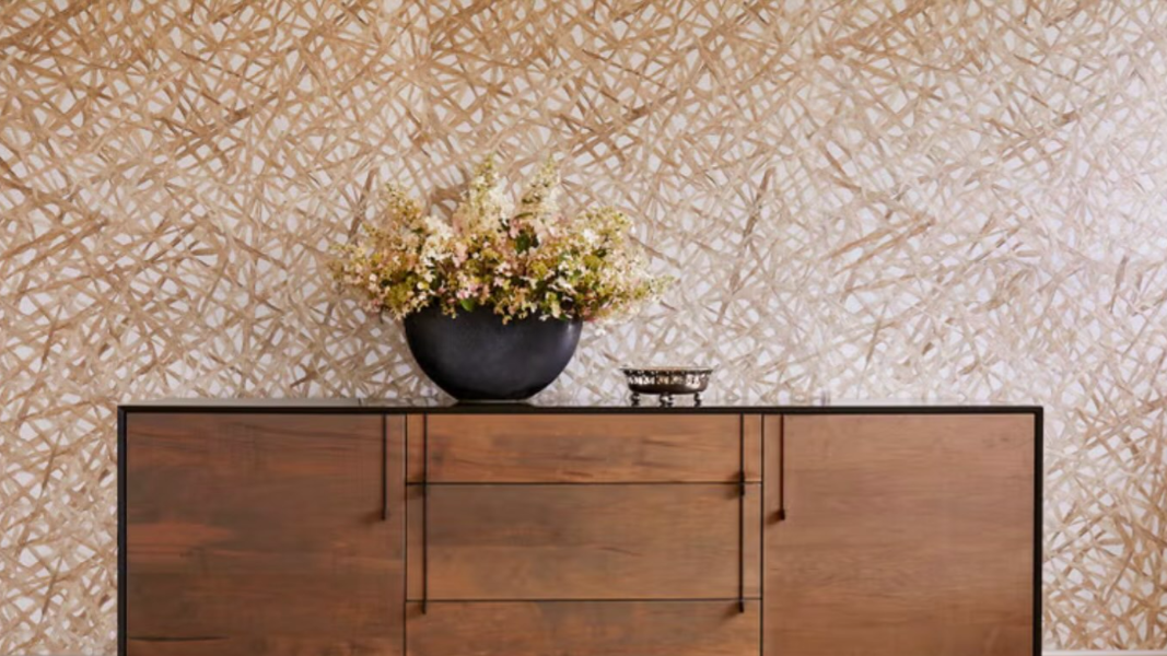 “When you squint, it looks like a funky Chanel tweed,” Lori told Veranda of her Up to Date wallcovering, featuring overlapping hand-cut strips of recycled magazine pages, created using a traditional basket-weaving technique in collaboration with a women’s collective in Indonesia.