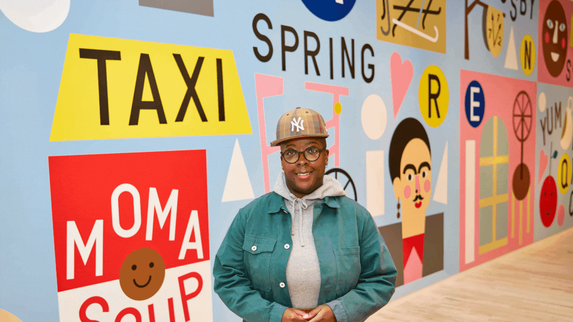 The north wall of the store now serves as a canvas for the Modern Mural, a site-specific artwork that brings MoMA’s programming into the store. The first mural is LOVE NYC by Nina Chanel Abney; it's a colorful piece that layers references to SoHo’s streetscape with nods to MoMA’s collection. Its scale and street-facing visibility through the reopened Spring Street windows transform the mural into a striking focal point inside and a colorful new spot to catch the eye of shoppers and design-aficionado passersby. If you’re in the area, the store is worth a visit—even if you don’t spend a dime.