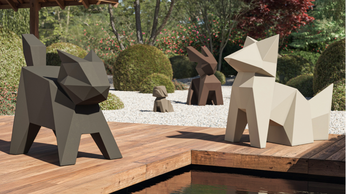 A collection of outdoor sculptures by Studio Vondom, Origami features planters and geometric animal figures inspired by the ancient Japanese art of paper folding, dating back to the 7th century. Boldly avant-garde, Origami comes in more than 10 colors, harnessing the power of light and shadow, and it’s made from 100 percent recyclable polyethylene resin in matte or lacquered finishes with UV resistance. Many pieces are available with internal LED lighting for added visual impact.