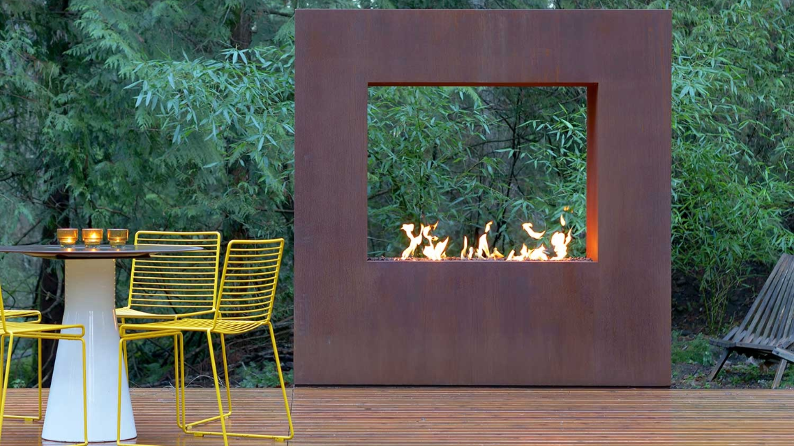Bring the drama with the Kodo outdoor fireplace. The 36-inch linear fire—in either a gas or propane burner—is framed by a massive square structure that conveys raw materiality. It’s also large enough to serve as a substantial space divider. The Paloform design team pared down the modern, iconic hearth to its essence to achieve this clean, minimalist design. Manufactured in Canada and shipped worldwide, Kodo is available in Corten steel for a rich patina or in powder-coat for a pure, monolithic aesthetic.