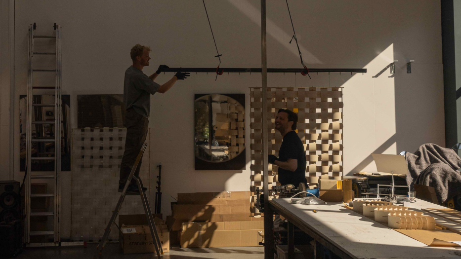 Rick Tegelaar in the process of creating "OASIS" for Milan Design Week. Photo by Amber Zeekaf