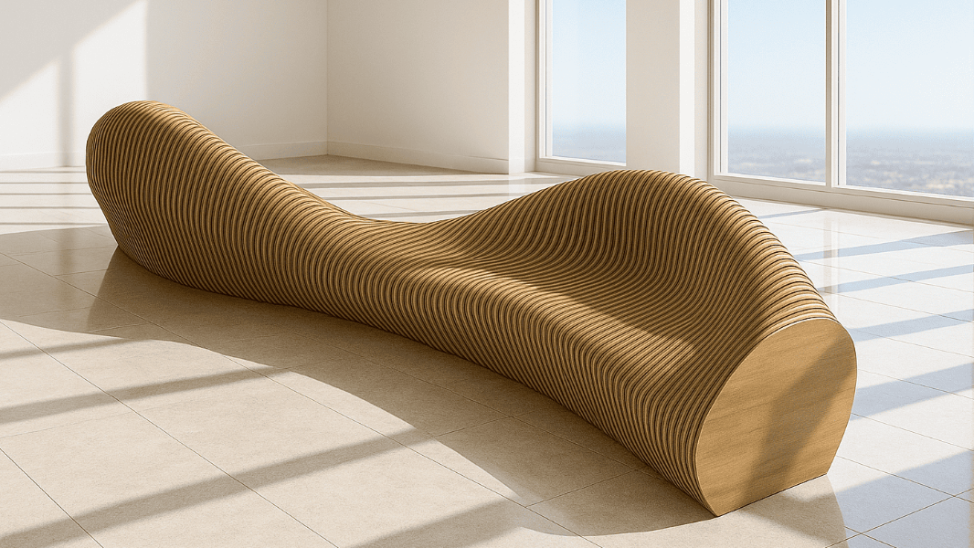 Furniture this striking is bound to become the focal point of any space. And with European polar core plywood, bound with steel all-thread, this parametric bench draws all the attention.