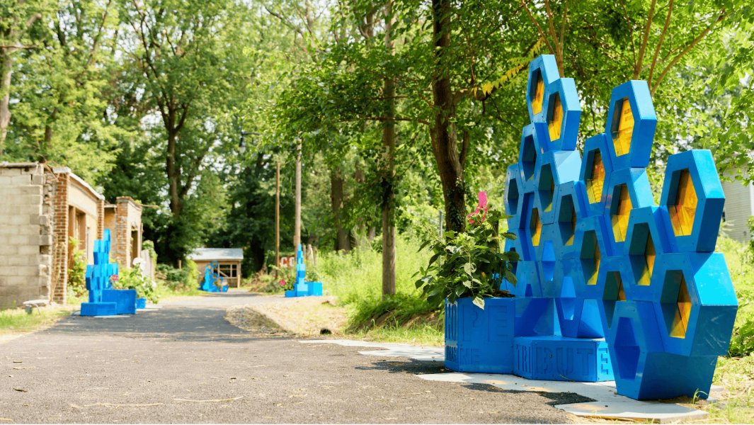 The Urban Conga’s process is unlike any other: They always start with community engagement, ensuring resident voices are the loudest in the room when deciding how to activate a space. And we’re not talking regular ol’ design charrettes with free coffee—it’s large block parties, markets, and multigenerational think tanks, where the secret sauce is play therapy. By helping those involved tap into their inner child, specifically for The Hive project, Ryan and Maeghann allow participants to feel vulnerable yet safe enough to discuss gun violence, inequality, or other traumas that the community confronts daily.