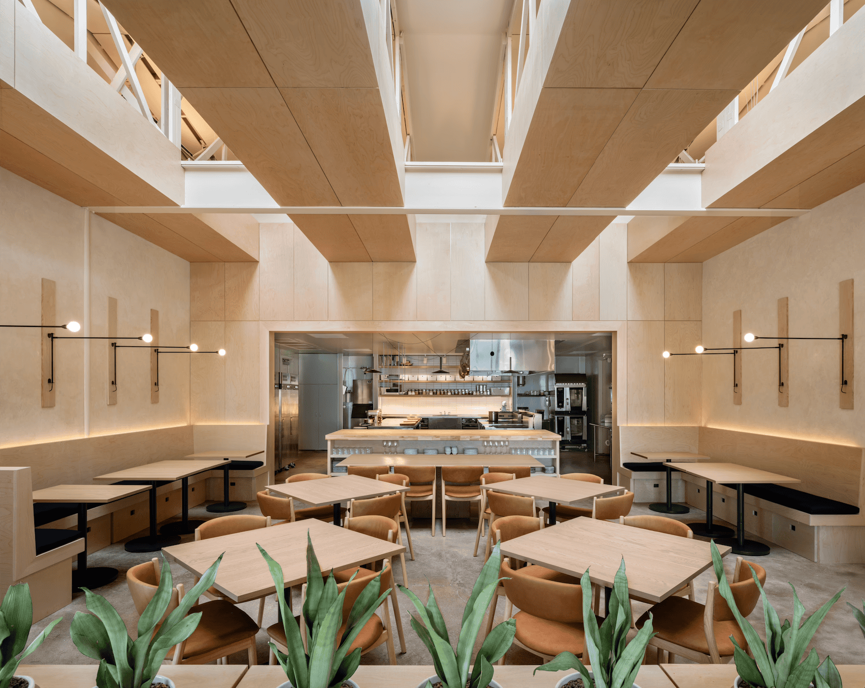 A former residential garage and wood shop in Houston has been reimagined as Camaraderie, a 75-seat restaurant rooted in warmth, craft, and connection. Designed by Schaum Architects, the space channels an “urban cabin” sensibility—complete with birch-wrapped trusses and an open kitchen that puts guests in the center of the action. The result? Fine casual dining in a space that feels both elevated and utterly unpretentious.