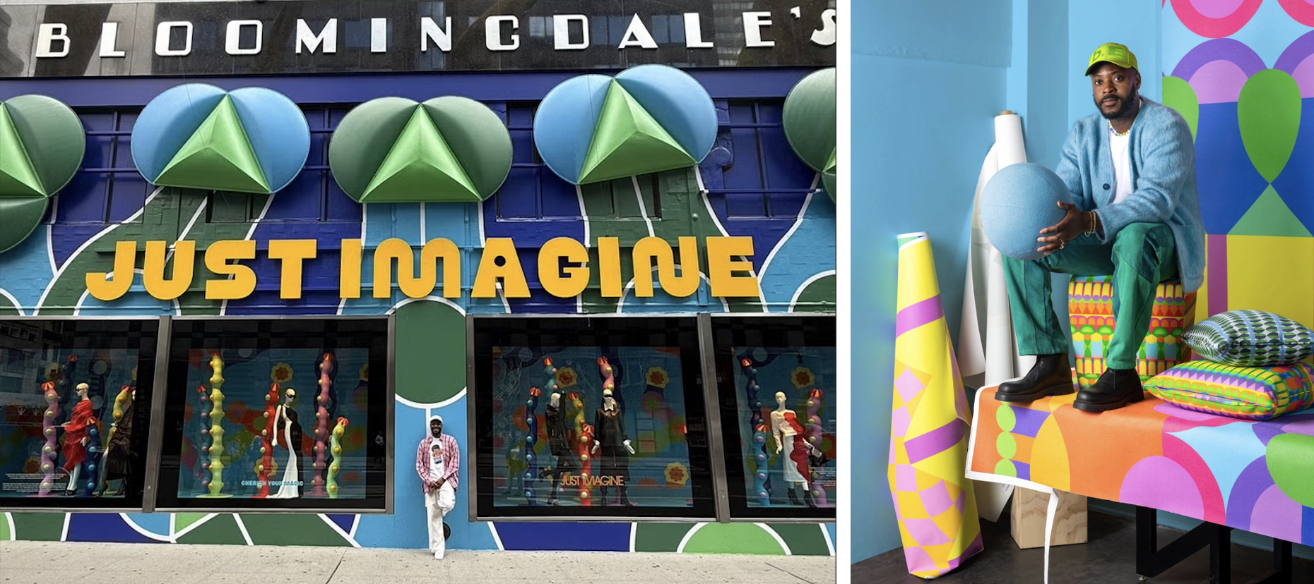 With a color-drenched palette and an optimistic sensibility, Ilori’s designs convey pure jubilation that’s worth the subway ride to 59th Street. A year in the making, Ilori first envisioned the installation—his largest project to date—while strolling through Central Park as he was taking in the nature and wildlife around him. Delighted with the resulting animated expression that radiates his signature style, Ilori has said he hopes the Bloomingdale's installation inspires viewers to believe in the magic within themselves.