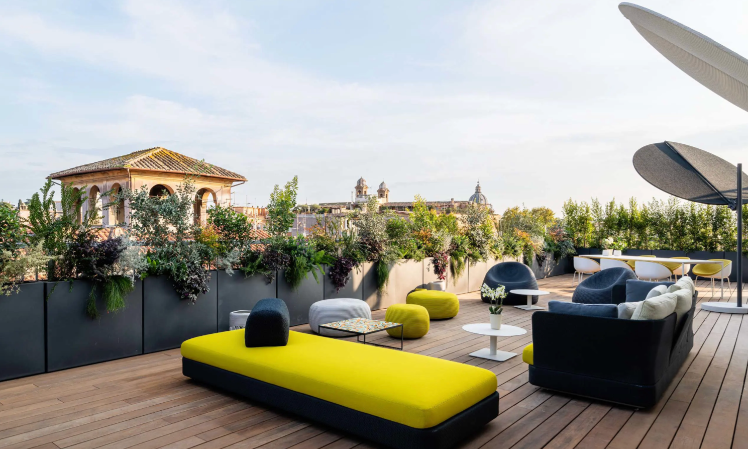 While many hotels offer dining and amenities, Romeo Roma distinguishes itself with experiences that embody exceptional 5-star luxury. Michelin-starred chef Alain Ducasse curated the fine dining restaurant Il Ristorante Alain Ducasse, led by executive chef Stéphane Petit. There is an expansive wellness center featuring a Sisley Spa with a pink Italian rock salt relaxation room, a fitness center, an indoor/outdoor pool, and a rooftop bar. If you do get the chance to visit, make sure you look up, as the ceilings are not to be missed!